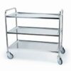 Epoxy powder coated tubular frame and epoxy coated sheet steel shelves. 4 x 75mm swivel castors.